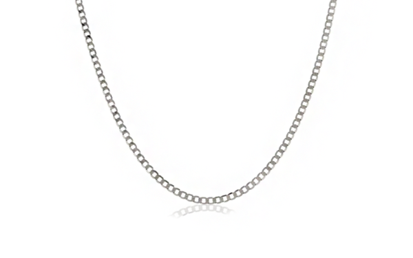 Platinum diamond cut curb link chain with bolt ring terrific worn on its own or with multiple other chains.
