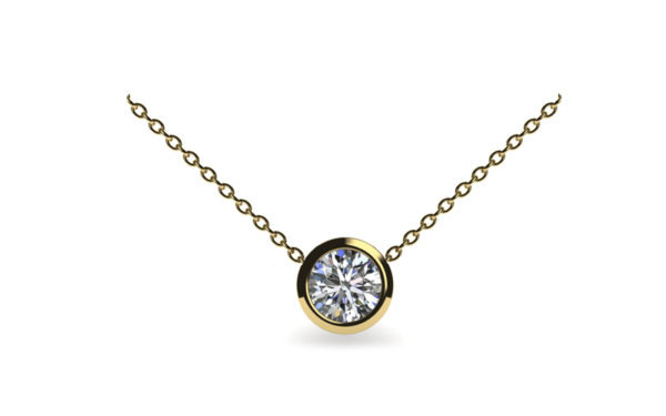 Stunning 18ct yellow gold pendant featuring a natural brilliant cut diamond set in to a bezel setting attached to a fine trace link chain.